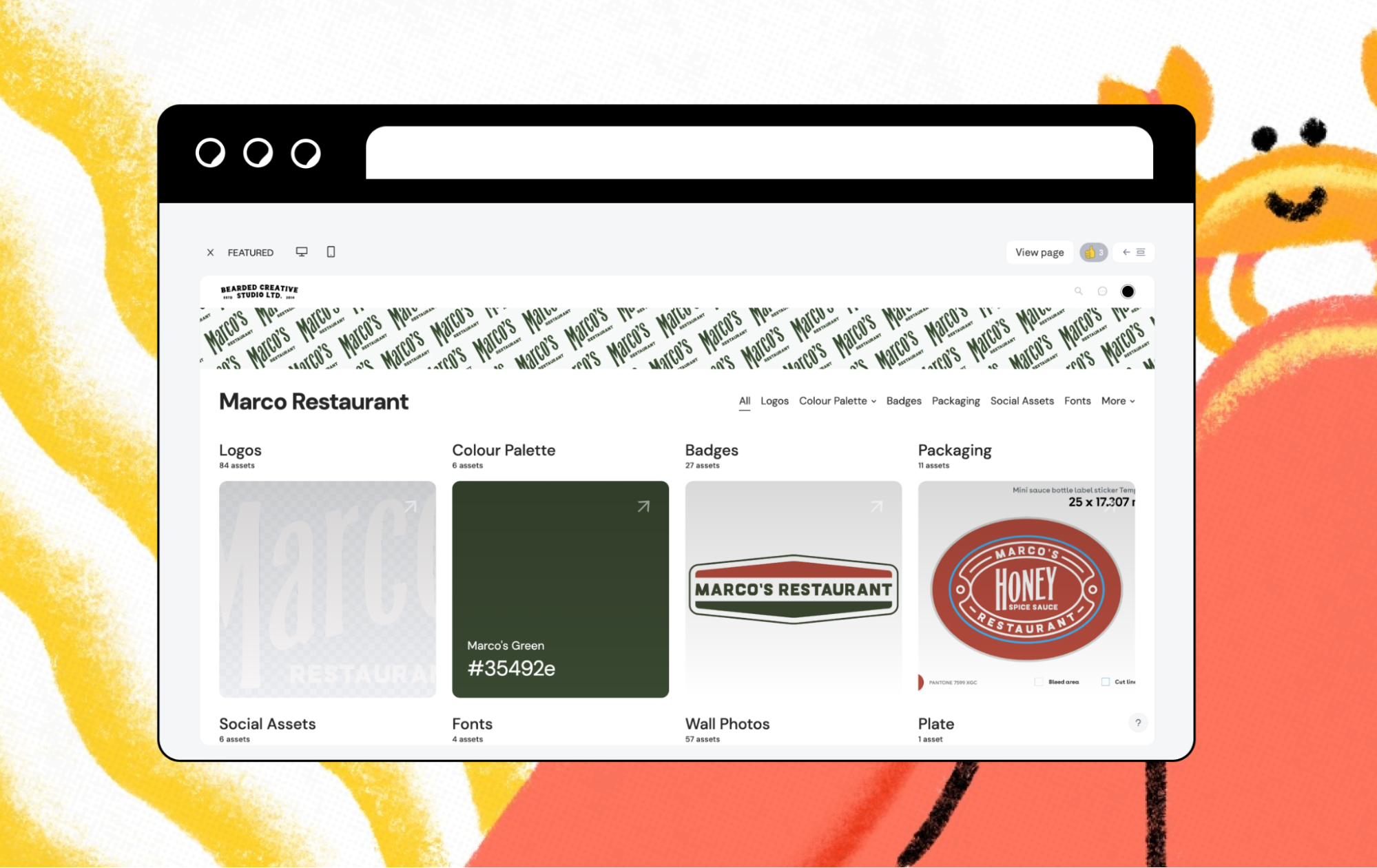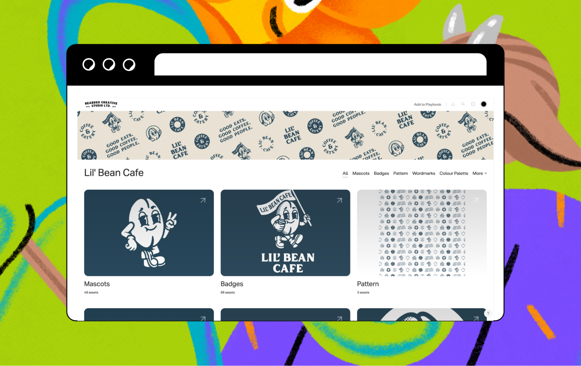 One example is his brand portal for Lil Bean Café. It’s a clean, fully branded, visual space where the client could access everything they needed, including colour palettes, badges, and mascots. It looks polished, feels intuitive, and reinforces the brand experience long after delivery.