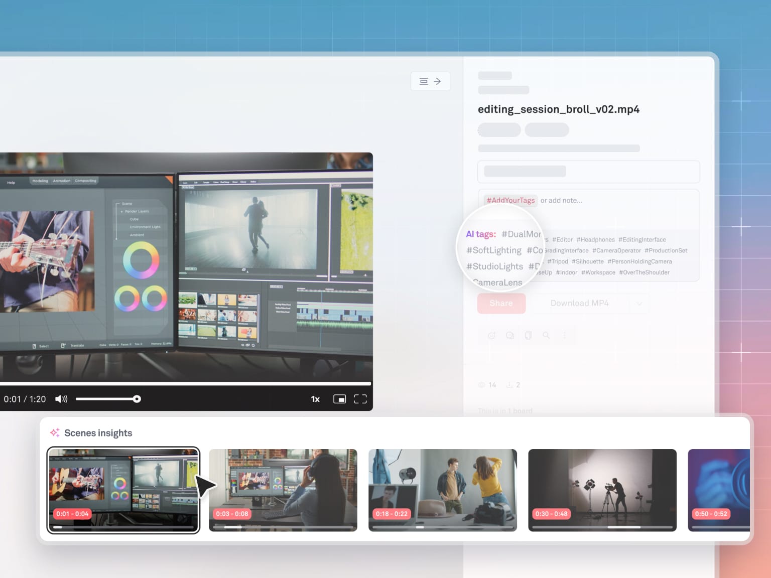 - Key moments (timecode ranges): “product reveal,” “CEO quote,” “end card”