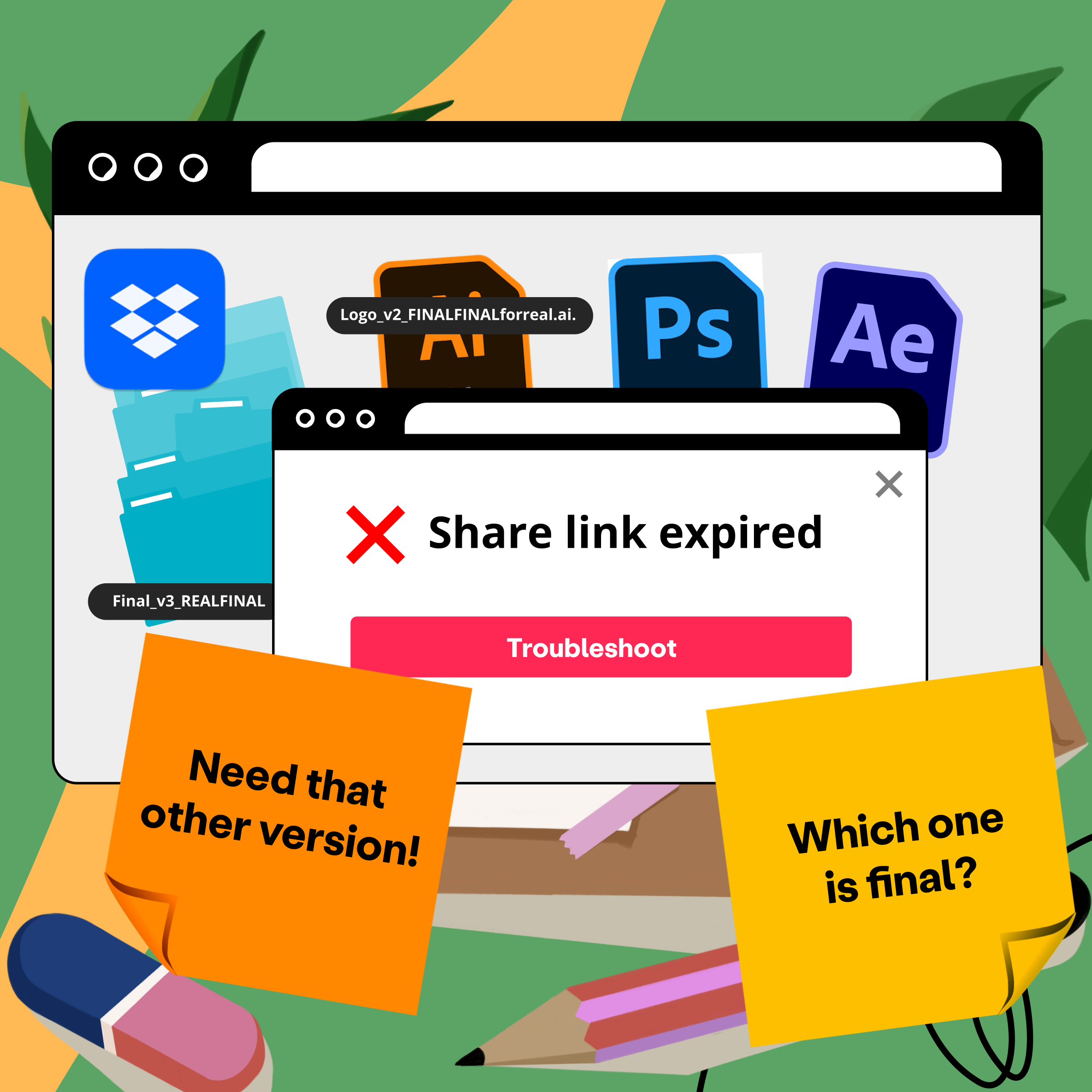 It's 11 PM, your client needs the final logo variations, and you're frantically searching through three different folders, two Dropbox links, and a dozen email threads. Sound familiar?
