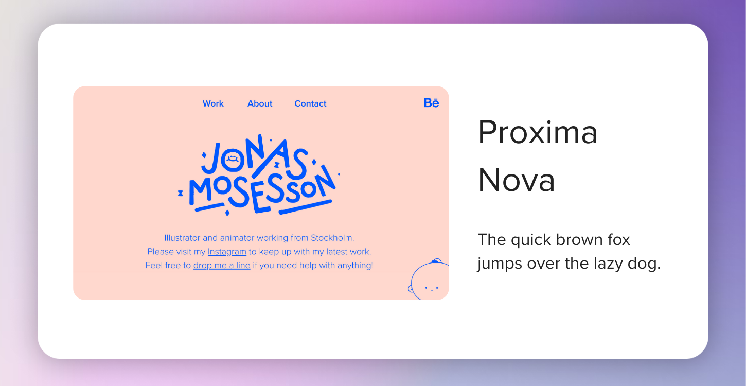 Known as the “workhorse” of modern design, Proxima Nova bridges the gap between Futura and classic grotesques. It’s approachable but sharp, pairing well with serif fonts like Georgia or Playfair Display.