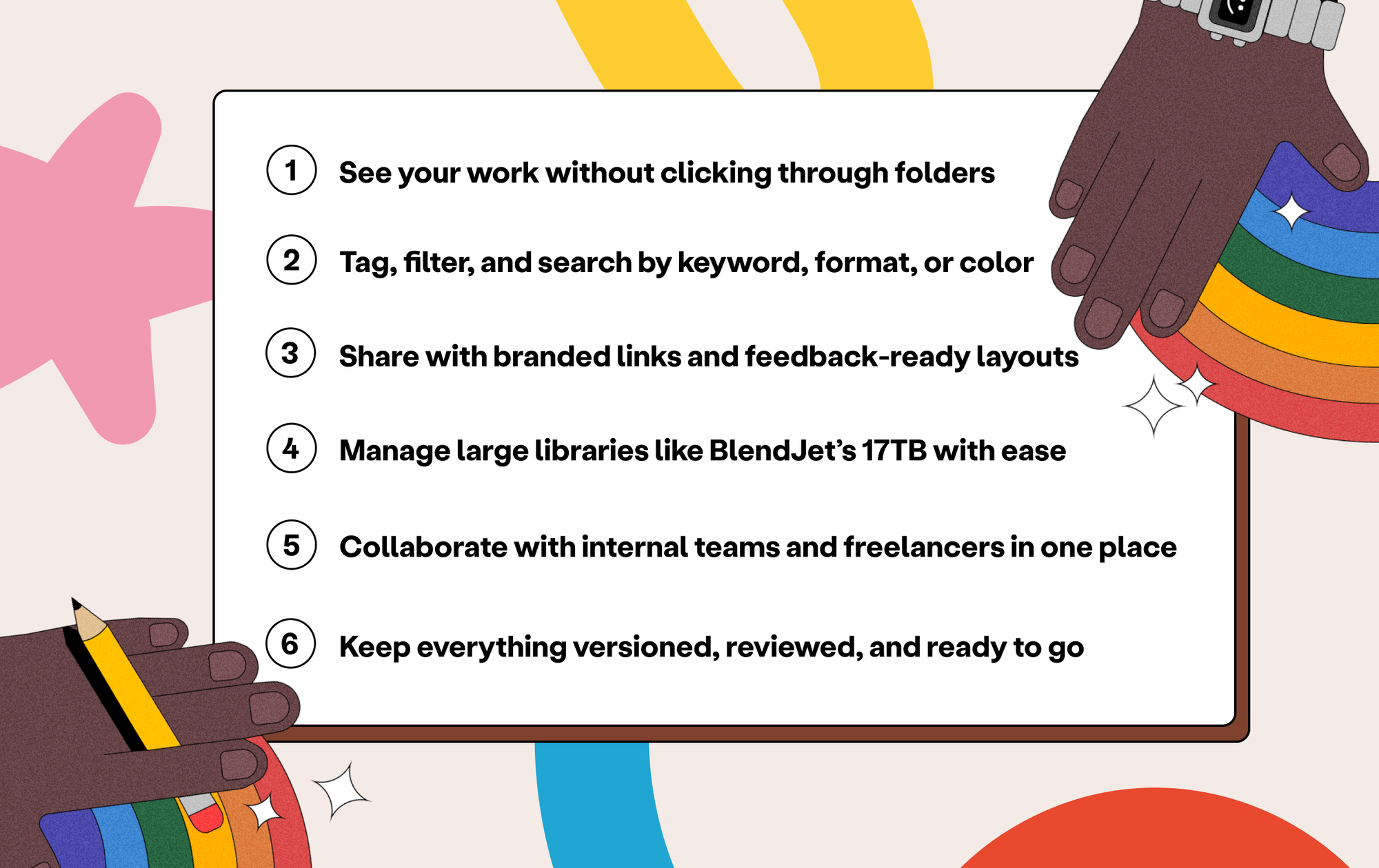 This scenario plays out in creative teams everywhere, multiple times a week. That's exactly why smart teams turn to digital asset management systems. A DAM keeps your files organized, searchable, and accessible to the right people so these treasure hunts become a thing of the past.