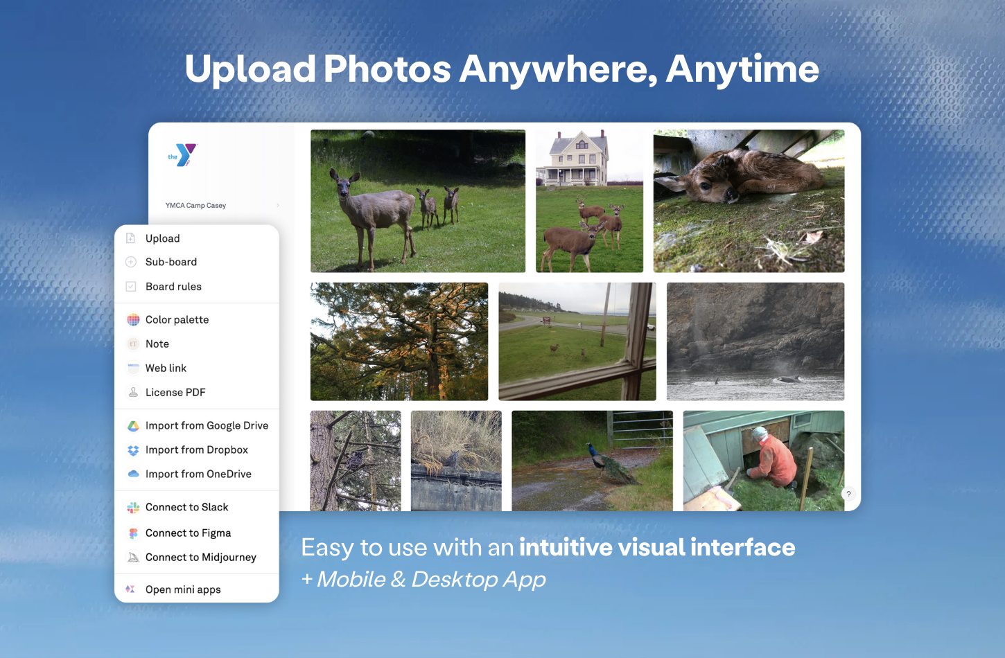 - Upload photos anywhere, anytime with an intuitive visual interface, easy file migration, speedy onboarding, and mobile + desktop apps.