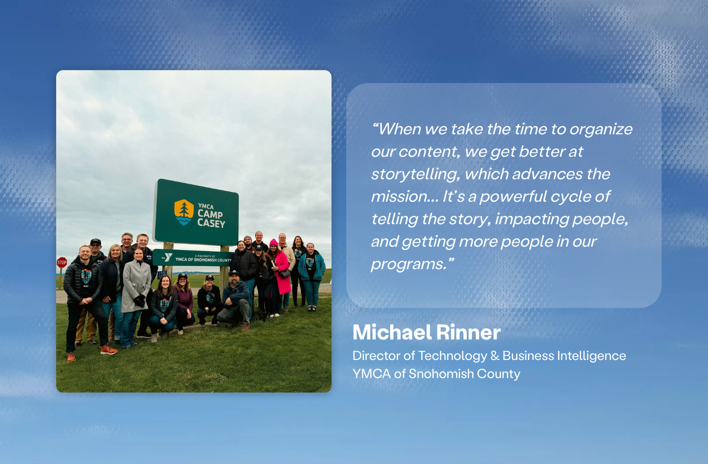 As the Director of Technology & Business Intelligence at YMCA of Snohomish County, Michael Rinner has seen firsthand how telling the right stories can amplify a nonprofit’s impact. In an organization where 90% of staff work directly with children and families, keeping the focus on those real frontline stories is paramount.